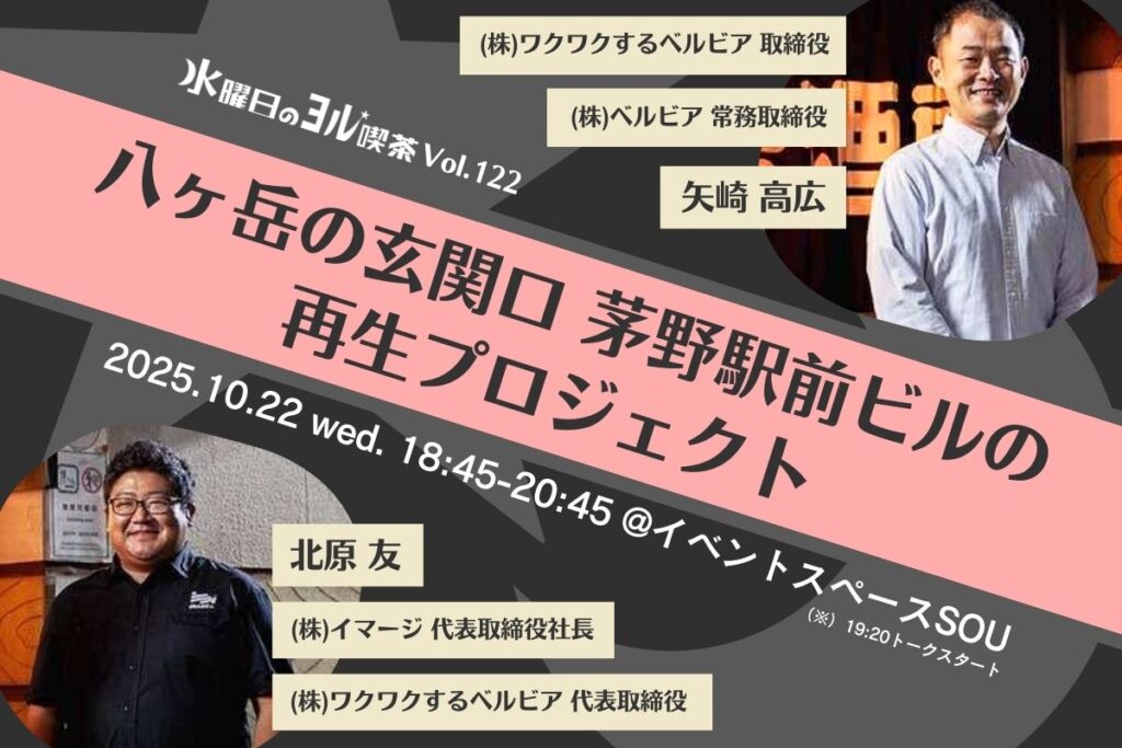“8Peaks Living” というコンセプトのもと、茅野駅前ビル「ベルビア」を八ヶ岳の玄関口にふさわしい拠点へと少しずつ整えています。