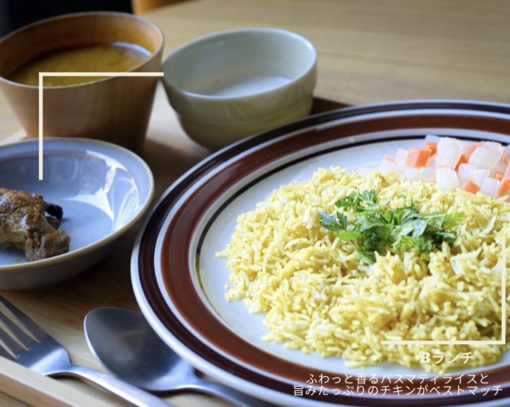 香り高いバスマティライスとスパイスで、心も体も満たされます。
