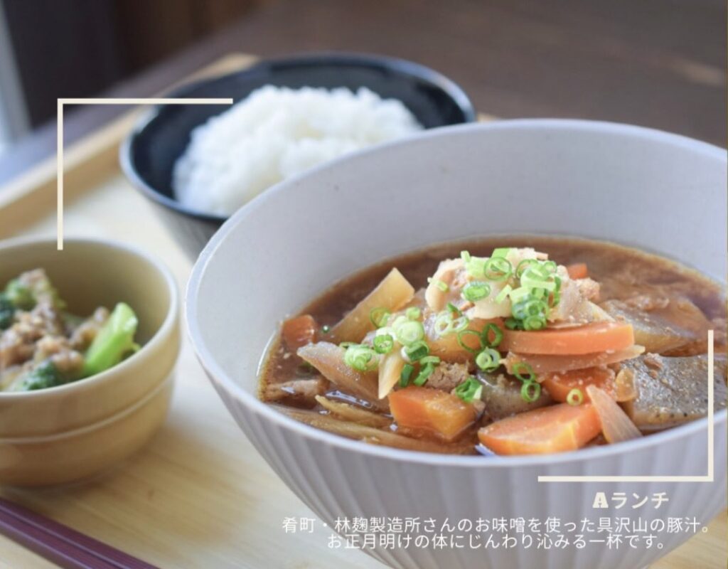 肴町・林麹製造所さんのお味噌を使った具沢山の豚汁。
